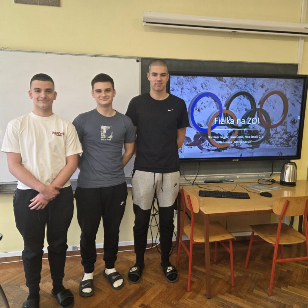 Učenici Noa Smaić, Dominik Gajger i Luka Ćosić su nam pokazali kako fizika objašnjava svaki korak koji klizač učini na ledu kod brzog klizanja. Preko Newtonovih zakona smo vidjeli da je sila odraza potrebna za ubrzanje, inercija za gibanje, a centripetalna sila za gibanje po kružnoj putanji. Veliku važnost imaju i zakoni očuvanja kao i sila trenja kako bi tijelo jednom pokrenuto održavalo svoju brzinu.
