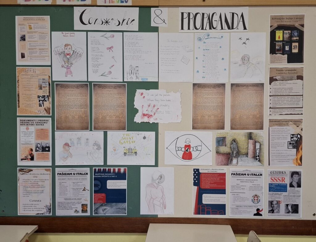U sklopu Mjeseca hrvatske knjige, profesorice Marina Cvijić i Mihaela Šebalj Zavor provele su aktivnosti međupredmetnog projekta “Censorship and Propaganda In the 20th Century” sa svojim učenicima, posebice u 4. E razredu.