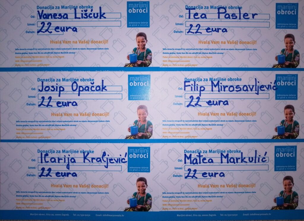 Volonterski klub “Carpe diem” Gimnazije “Matija Mesić” ponosan je na sve učenike škole jer su u prosincu 2025. godine podržali božićnu akciju “Jedan razred-jedno dijete”. Inicijator akcije je profesorice Mihaela Šebalj Zavor. Svaki je razred donirao 22 eura za Marijine obroke jer je toliko potrebno da se jednom djetetu u Africi omogući jedan dnevni obrok u godini dana, a često im je to i jedini obrok u danu. Posebnu zahvalu zaslužuju učenici koji su samostalno donirali cijeli iznos potreban za prehranu jednoga djeteta, a to su: Vanesa Lišćuk iz 1. F razreda; Josip Opačak iz 1. G razreda; Tea Pasler iz 2. B razreda; Filip Mirosavljević iz 2. G razreda; Ilarija Kraljević iz 3. F razreda i Matea Markulić iz 4. E razreda. Također pohvaljujemo i sve učenike 3. B i 4. E razreda koji su donirali za dva djeteta kao razred. Akcijom su prikupljena sredstva za 37 djece, ali kako humanost nema trajanje, naknadno je jedna učenica uplatila cijeli iznos, stoga povećavamo broj zapisan na Zahvalnici na 38. Gimnazija broji 28 razreda, dva razreda su donirala za dva djeteta, šestero učenika je samostalno doniralo novac, a još dva djeteta su nahranjena dobrotom nekih profesora razrednika. Hvala svim učenicima i profesorima na nesebičnim znakovima ljubavi koji spašavaju živote, a mi se nadamo sljedeće godine premašiti ovogodišnju konačnu brojku 38!