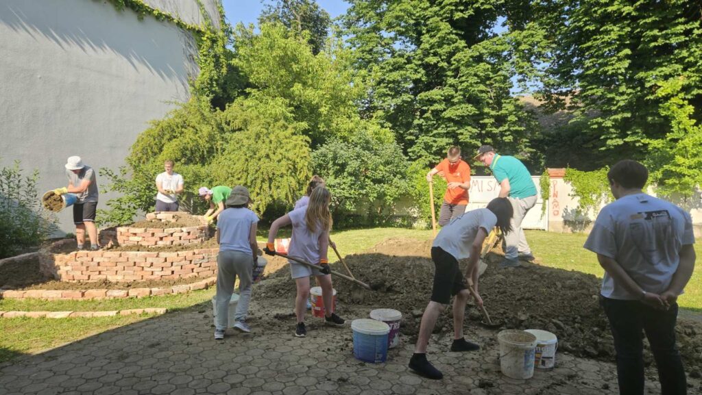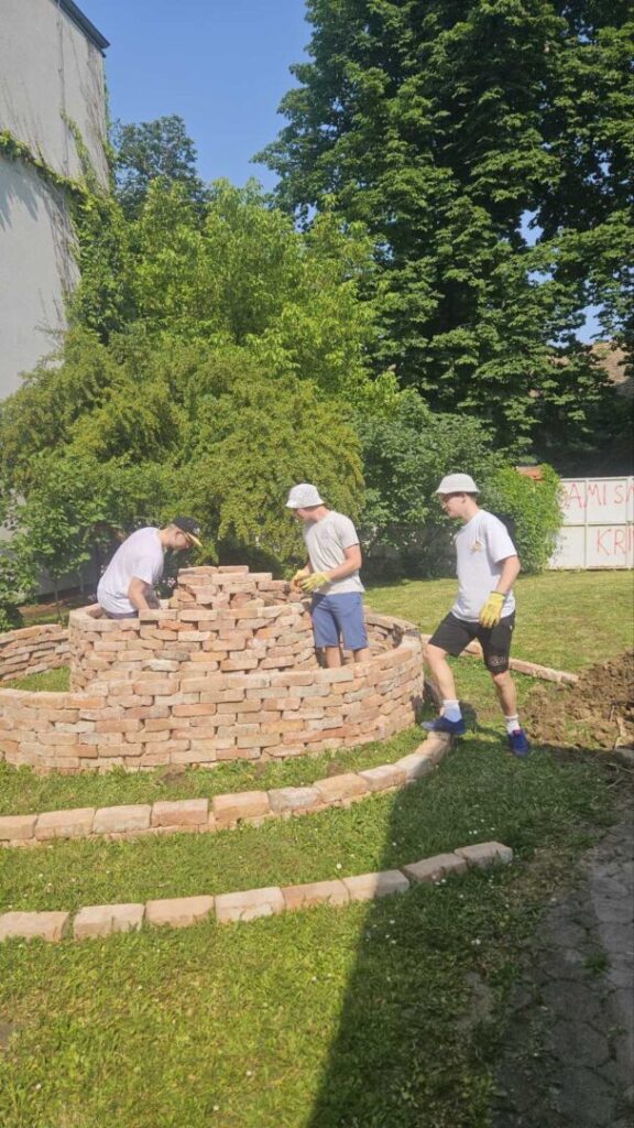 Last school year, we successfully built the spiral garden — the first and important step in implementation of our eco-educational project. Shaping the spiral structure from old bricks and filling it with soil helped creating a unique space for planting and studying various plants.